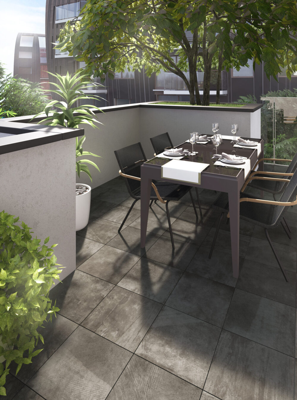 2 cm stark und frostbeständig, so erobern die Outdoorfliesen Terrassen, Balkone, Poolumrandungen und sonstige Außenbereiche. Je nach Beschaffenheit des Unterbaus werden die Feinsteinzeugplatten in unterschiedlichen Techniken verlegt. Unsere qualifizierten Fliesenleger haben das notwendige Know-How – denn für einen dauerhaft schönen Terrassenbelag mit Fliesen ist ein normgerechter Konstruktions-Aufbau – je nach örtlicher Gegebenheit – unerlässlich.